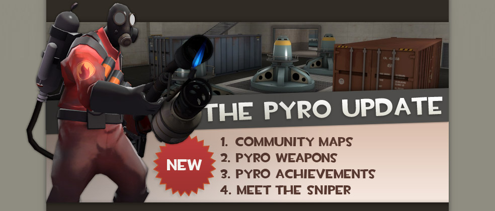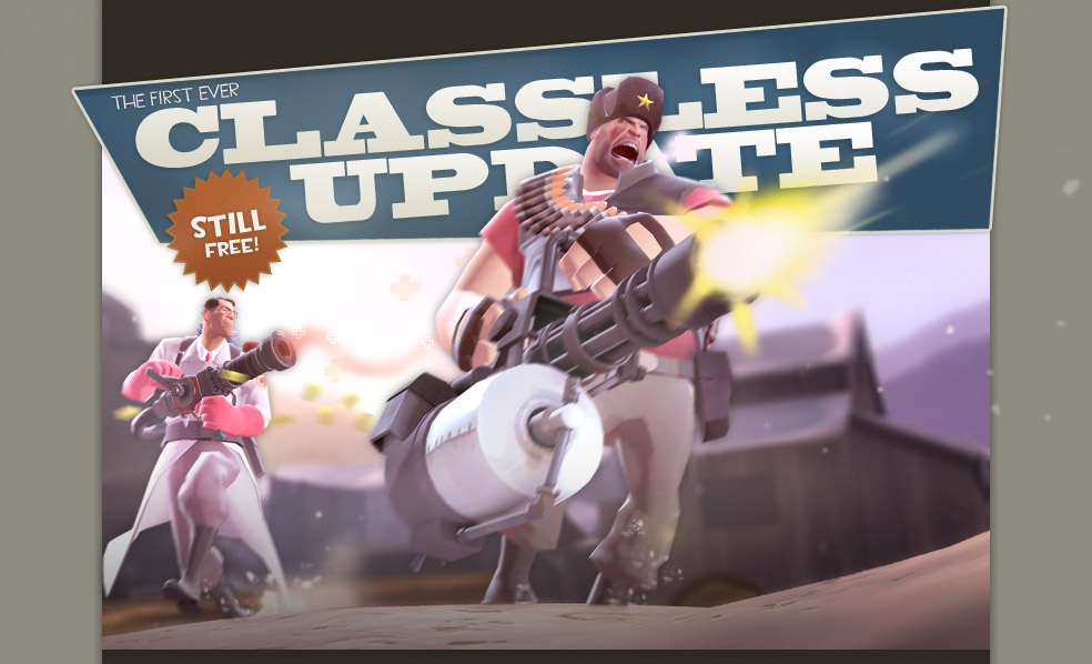 It's been a busy afternoon here iterating, polishing and playtesting a blog post to commemorate Team Fortress' one hundredth update. As often happens, we emerged from thirty minutes of Valve Time, covered with bed sores and sporting full beards, to discover weeks had passed. While we were out, somebody here shipped 19 more updates originally scheduled for release in 2008. At any rate, welcome to the 119th Update celebration, as we look back on three(ish) solid years of updates!