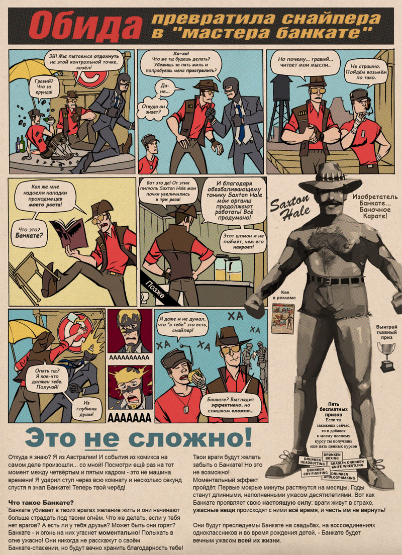 Rain on Their Parade: Jarate an enemy and the Medic healing him.