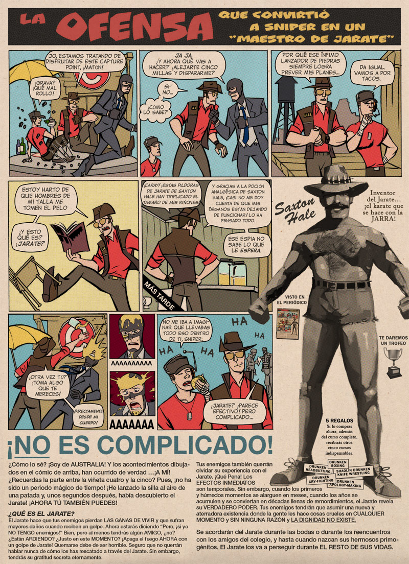 Rain on Their Parade: Jarate an enemy and the Medic healing him.